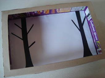 Соберите коробку. Если на внешней стороне есть какие-либо рисунки, их следует завернуть внутрь. Боковая стенка должна быть оклеена клейкой лентой. Чтобы будущая сцена выглядела аккуратно, покрасьте стенки коробки или обклейте их бумагой.
